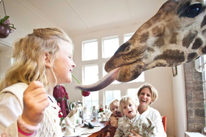 | The most fascinating thing about Giraffe Manor is not the beautiful façade or elegant interiors - it is the herd of resident Rothschild giraffes. These beautiful creatures often visit morning and evening, poking their long necks into the windows in the hopes of a treat before retreating to their forest sanctuary. |